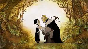 The studio’s films have long been interested in shedding light on the beauty of Irish mysticism and mythology, but unlike the afforementioned films (Song of the Sea and The Book of Kells), the Celtic Mysticism in this beautifully hand drawn 2D animated film sneaks up on the story. The quiet nature of the first half hour gives us the space to really get to know these characters, the village and community, while offering us glimpses of the forming culture that surrounds them, much of which lies invisible and forgotten by the village dwellers. We get the sense that their world is much bigger than what lies witin the shelter of the city wall, and this sets us up to desire the revealing of this mystery which lies just beyond in the thick of the surrounding forests, the same forests now envisioned as a roadblock to their wanted progress.