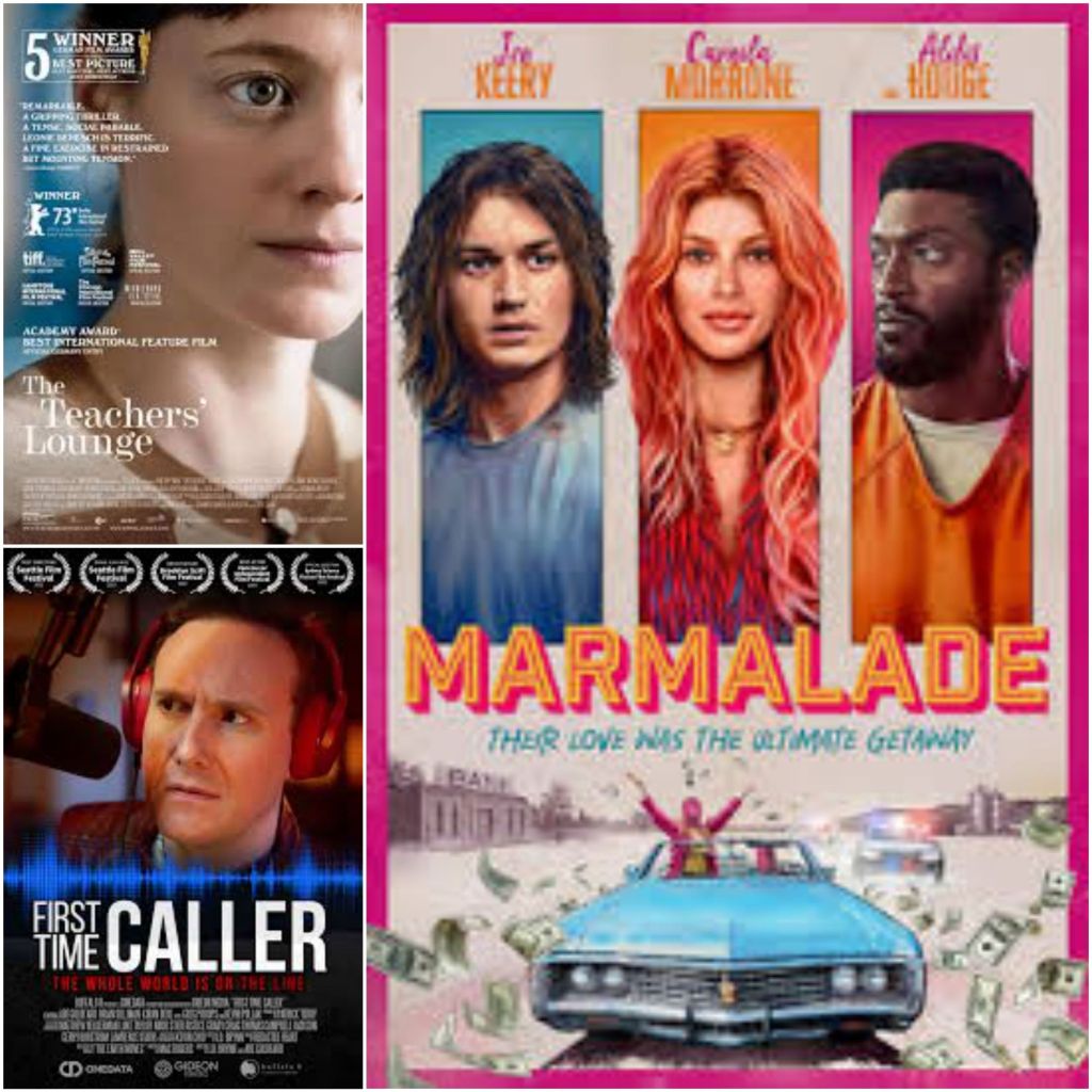 The Teachers Lounge One of the most intense and stressful watches of 2024 thus far. The build up is next level Marmalade A low key, entertaining, indie action film that proves to be fun and inventive. First Time Caller Single location thriller that hits above its paygrade in terms of overall execution