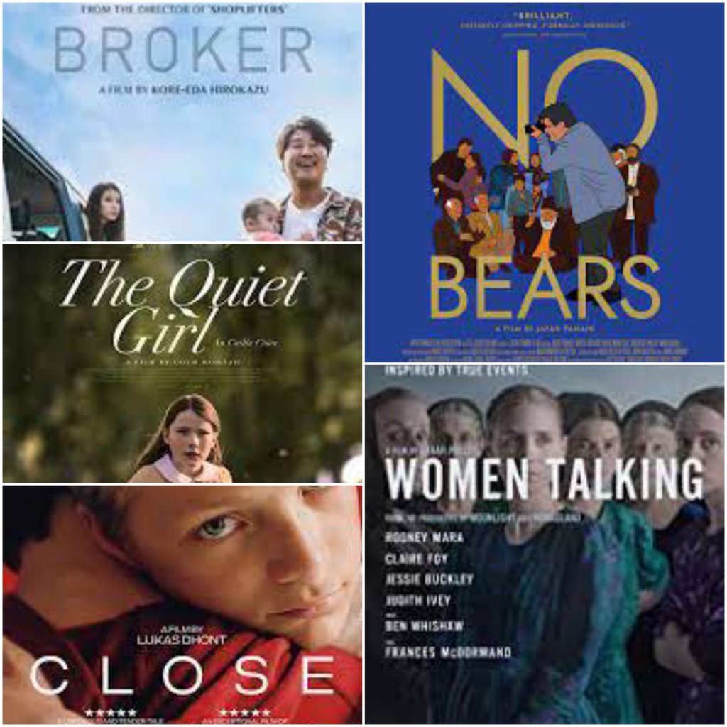 All of these films could be wrestling for my number 1 spot, so I figured I would spotlight them given their wide release in 2023 conflicts with their awards season representation and/or official release date in 2022. Broker leads the pack with one of the great Directors of our day (Kore-eda) demonstrating his penchant for strong themes and emotional gut punches mixed with humor and reflection on found family, forgiveness, all mixed with a good dose of moral ambiguity. Another iconic Director (Jafar Panahi) delivers what i think might be his most personal and intriguing work to date in No Bears, fusing his personal experience with film about telling the necessary stories in a messy and difficult and often dangerous world. The Quiet Girl is a profound exploration of telling stories without unnecessary words, while Women Talking is a powerful film about giving voice to the voiceless. And if Close has its way, it binds the quiet and the voice of the voiceless to a startling exploration of finding closeness in a world made of social constructs designed to keep us apart